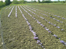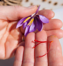 On enfile les bottes et on ramasse une à une les fleurs de safran dans le champs.