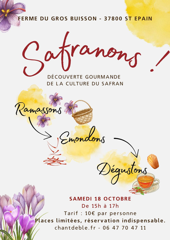 Madelaine au safran, beurre de safran, tarte aux pommes safranées, boisson à base de sirop de safran et les conseils culinaires qui vont avec, ca vous donne envie j'espère ?